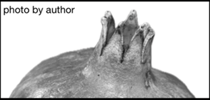 The decorative top of the pillar is called the capital. Each capital is five cubits high, and, as with the dimensions of the altar, the number five speaks of God’s grace, here now high and visible to all. Two hundred carved pomegranates encircled the capital. The pomegranate fruit is topped with an unusually shaped stem, or calyx, which, once the fruit is pulled from the tree, looks remarkably like a crown and is called just that in the Koren Talmud Bavli. This speaks to Jesus’ crown of thorns and that he is not just a king, but the king, “The King of the Jews,” as Pilate insists on labeling above his head (John 19:21). After he was abused and mocked, “Jesus came out, wearing the crown of thorns” (John 19:5).